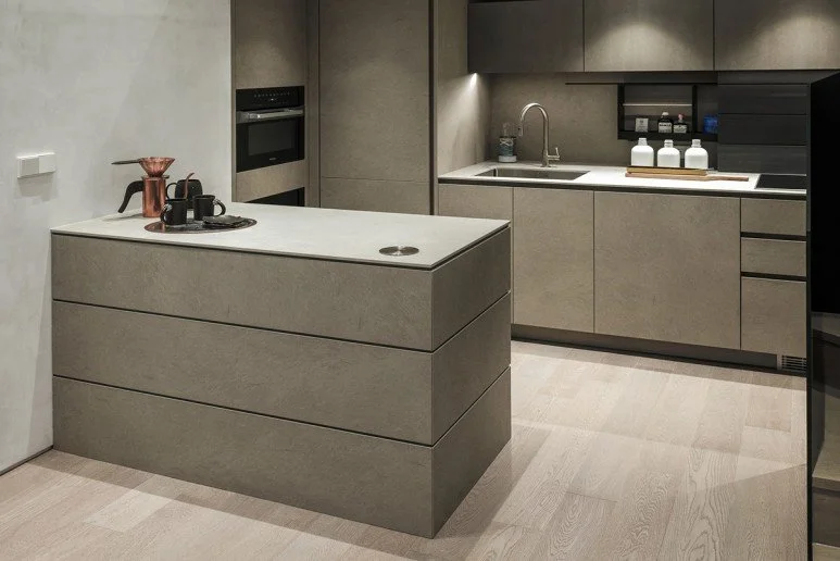 미니멀하고 도회적인 디자인 위로 자연스러움이 깃든 텍스처를 더하여 타사와 확연히 차별화되는 주방을 경험할 수 있습니다.