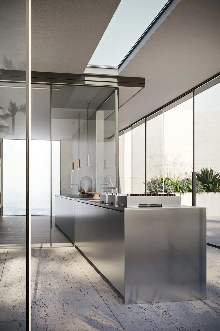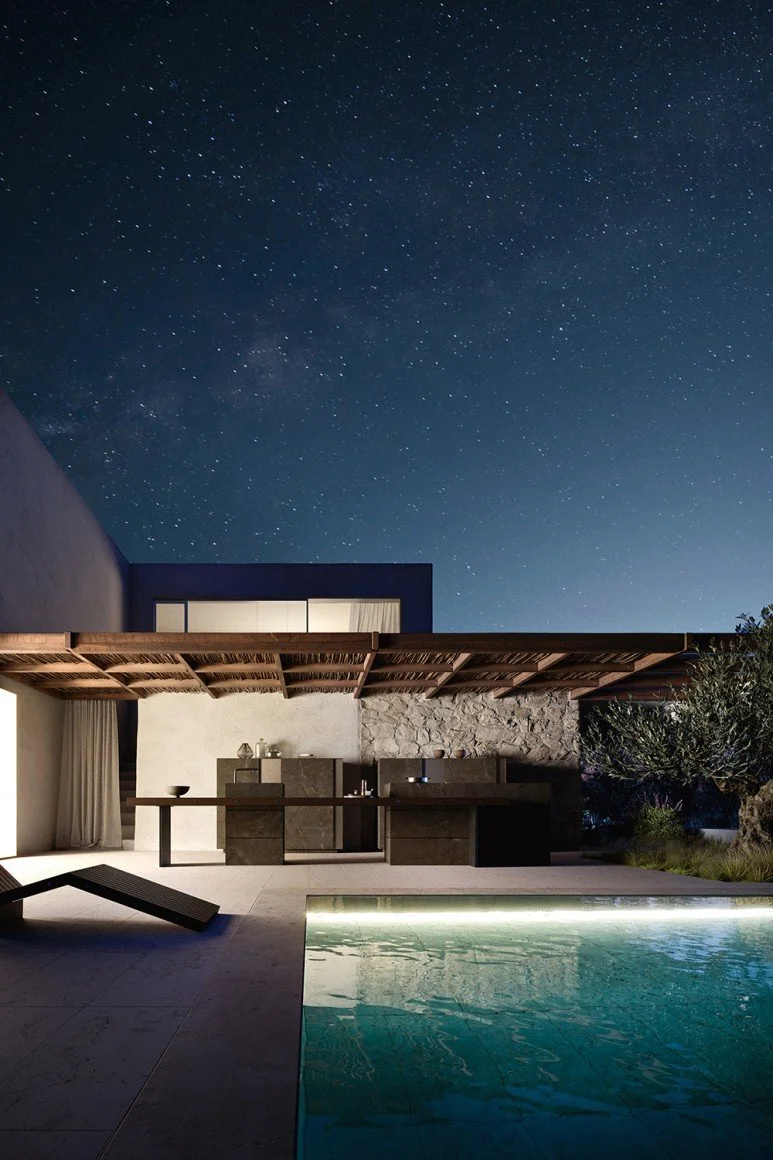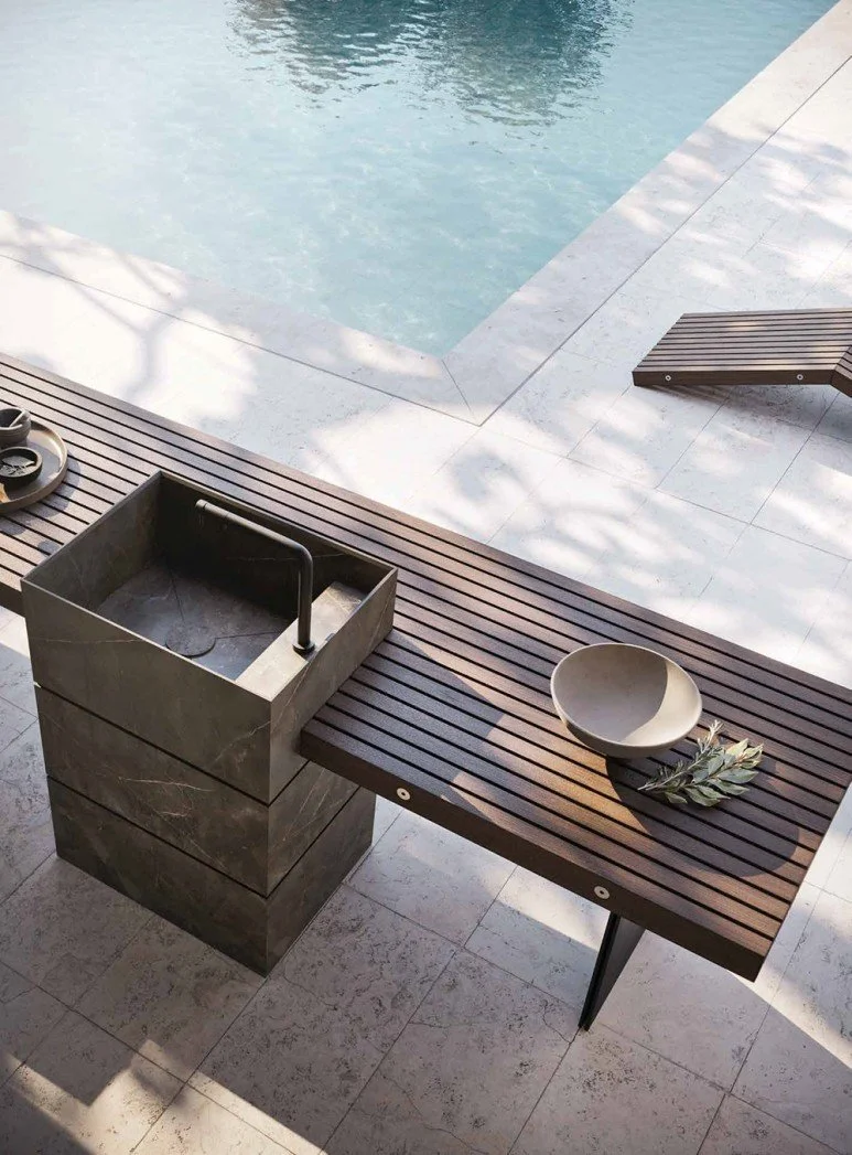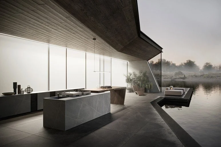 모듈노바의 아이덴티티인 모던한 디자인과 건축미, 텍스처를 부각하면서 야외 환경을 포용할 수 있는 내구성과 기능을 갖춘 주방을 소개합니다.