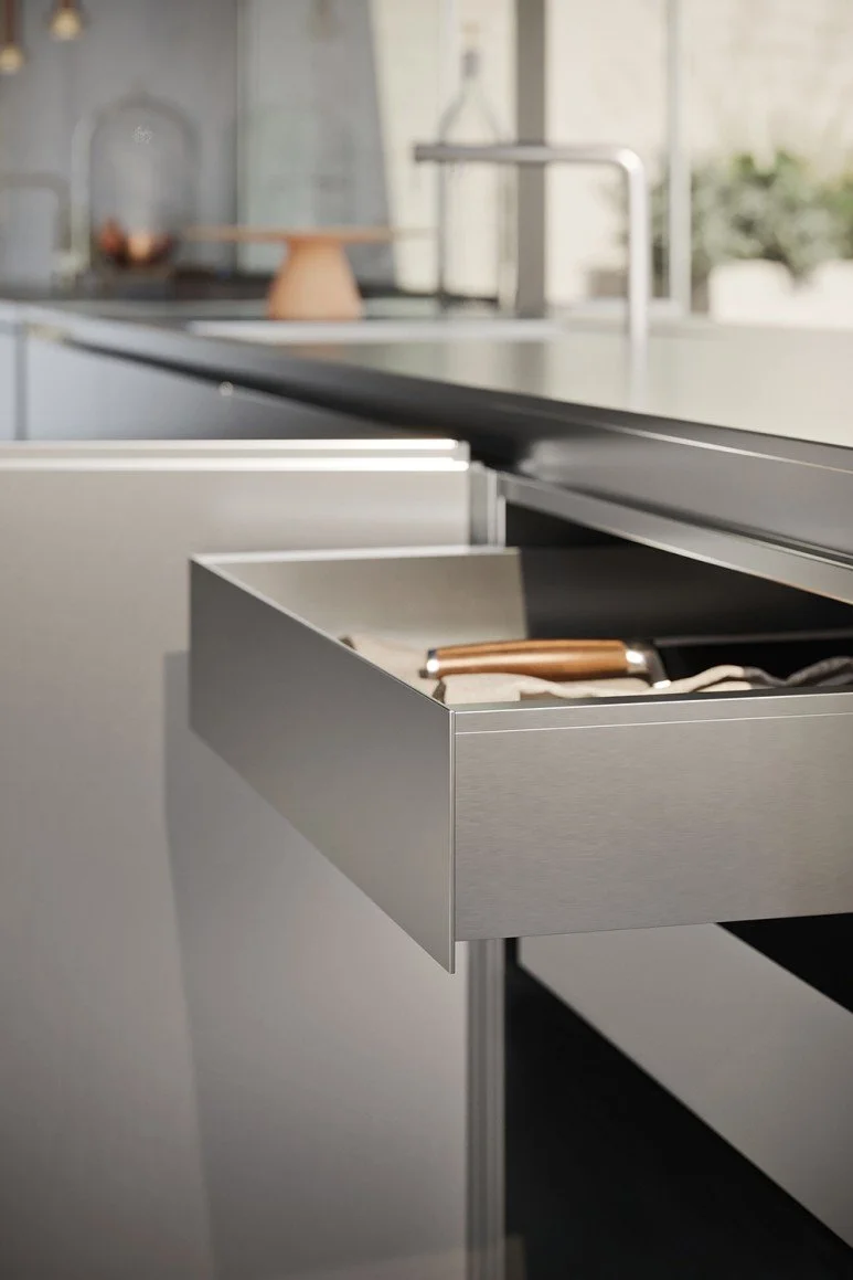 스테인레스 스틸은 깔끔하고 트렌디하며, 오랜 시간이 지나도 질리지 않아 단연 인기있는 소재인데요. 마감 고유의 강인한 내구성과 위생성으로 주방 인테리어에서 특히나 각광받고 있습니다.
