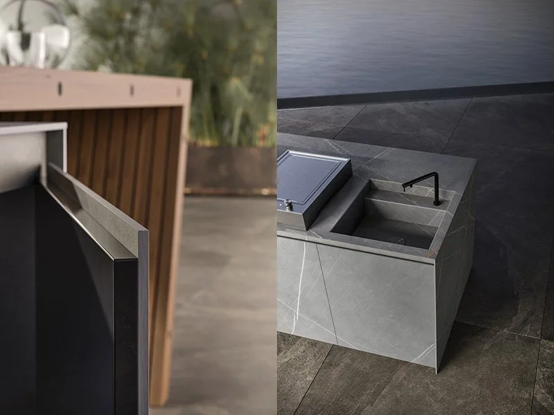 이러한 경향에 발 맞춰 모듈노바 역시 새로운 아웃도어 키친을 선보여 주방 라인업을 강화했습니다. 아웃도어 라인업은 실내외 어디에 두어도 자연스럽게 어울릴 수 있도록 설계했습니다.