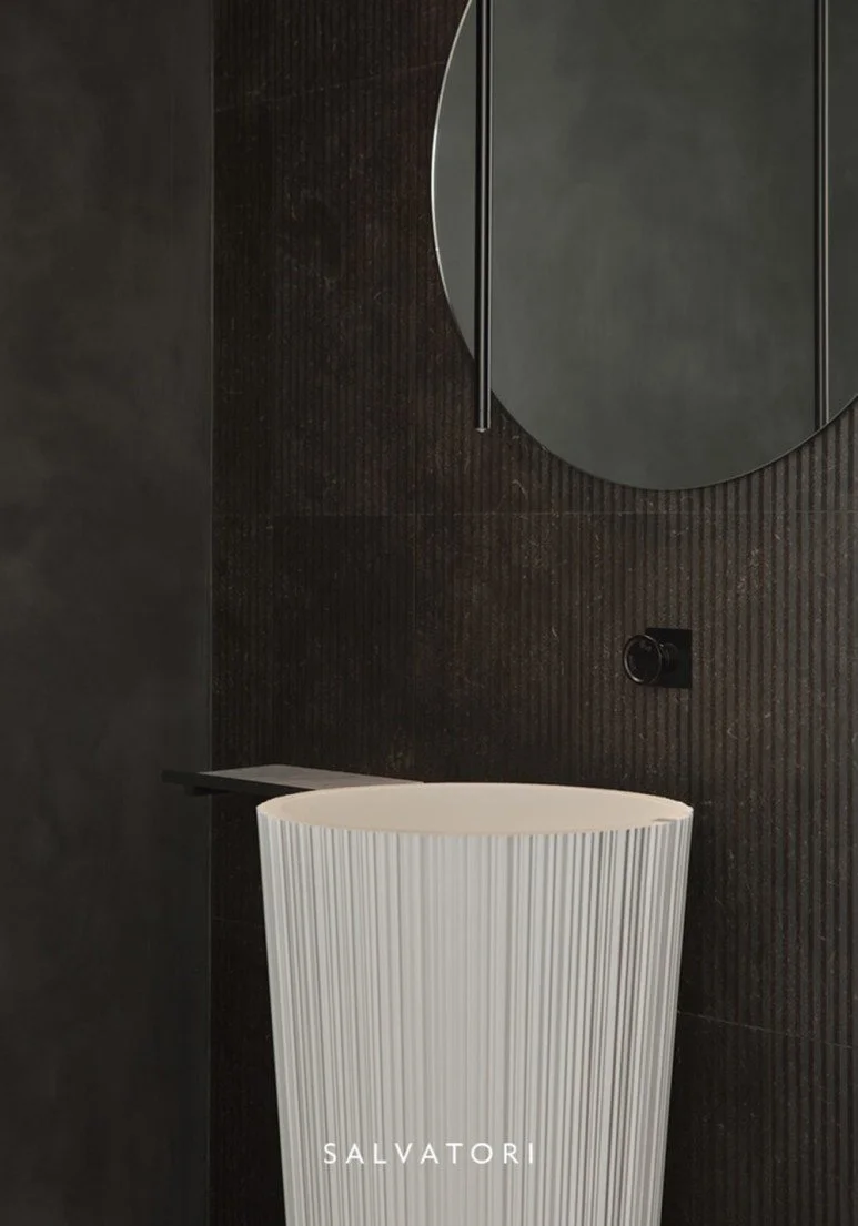 살바토리는 수많은 마감 중에서 지속 가능성, 디자인, 기술력, 장인 정신을 지녀 디자이너와 클라이언트의 최대 만족을 불러 일으켰습니다. 메인 침실과 욕실 등에 포인트로 적용해 주택의 무드를 높이는데 일조합니다.