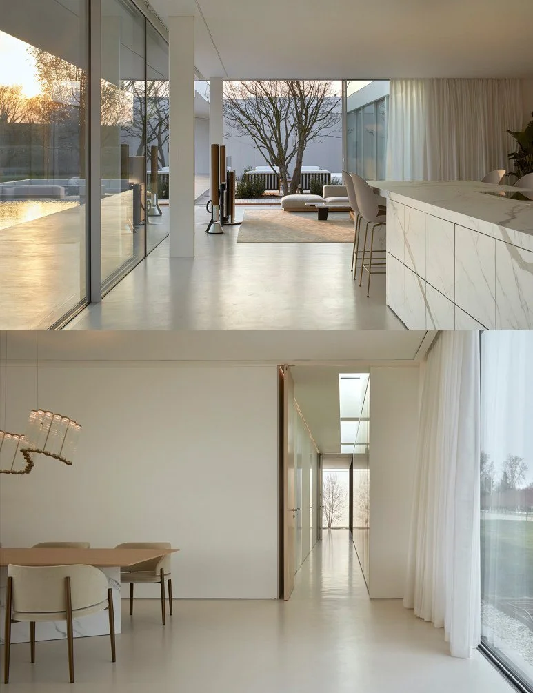 외부 경관에 맞게 탁 트인 오픈 플랜 구조로 어디서나 어느 각도에서나 자연을 만끽할 수 있으며, 풍경이 주가 되도록 모던한 흐름에 럭셔리 포인트가 가미된 인테리어를 완성했습니다.