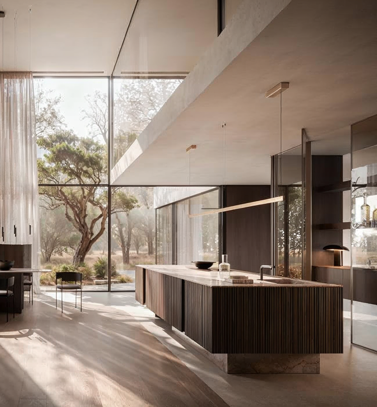 또 2025년도에는 신제품 버티컬(Vertical)과 아트(Art)를 선보였다. 버티컬은 기존 일률적인 수평방향의 도어 핸들에서 벗어나 수직방향을 적용한 디자인이다. 석재와 함께 조합된 우드에는 수직패턴이 적용되고, 도어 뒤에는 슬림한 간접 조명까지 더해져 감각적인 입체감을 연출한다. 아트(Art)는 모듈노바가 독점으로 사용하는 석재인 아펜니노(Appennino) 대리석과 수작업으로 제작된 월넛 마감 도어의 정교한 조합이 특징으로, 기능성을 넘어 오브제로서 역할을 담당하는 디자인을 보여준다.